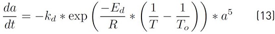 Where a is the term describing the deactivation, R is the universal ideal gas constant, T is the system temperature, To is the reference temperature, kd is the specific deactivation constant and is equal to 4,39x10-5 h-1 and Ed is the activation energy of the catalyst deactivation process and equals 9,1x104 J/mol[16].
