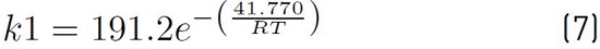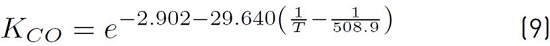 For this proposed mathematical model, r denotes the reaction rate, f fugacity, T temperature and R the ideal gas constant.
