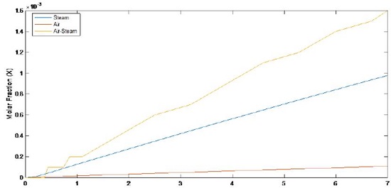 In Figure 2, it is shown the methanol molar fraction profile for SYNGAS obtained from flower waste gasification, whose compositions are shown in Table 2, which considers several gasifying agents.