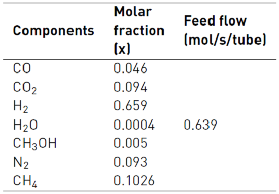 Additionally, the methanol synthesis reactor characteristics and operation conditions, are illustrated in Table 5.