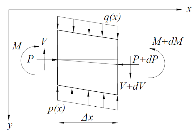 The governing DE of the beam-column element described in Figure 1 is obtained by applying equilibrium to the free-body diagram shown in Figure 2[24]. The DE is described by Equation (1) as follows: