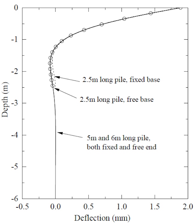Example 4: Lateral deflection of short and long piles.