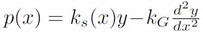 where is the reaction normal to the element and q(x) is an external transverse load that fits a second-degree polynomial function [i.e., q(x) = a0+a1x+ a2x2]. ks (x) = k0+cx is the modulus of subgrade reaction (first-parameter) and kG is the shear layer connecting the elements at the top ends (second-parameter). Introducing