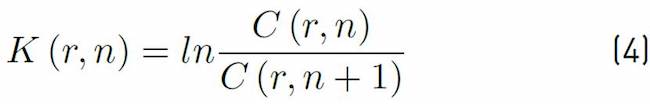 The correlation entropy is calculated using the values of the correlation integral using the following formula (4):