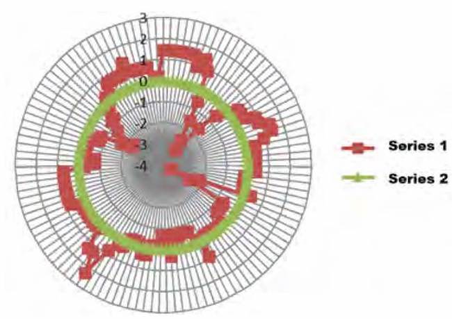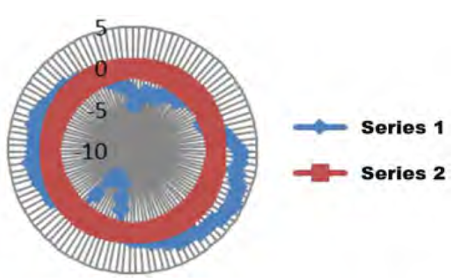 The form of the part is measured both on the machine and using stands. The price of the inductor dividing is 0.0001 mm when measuring the deviation from roundness on the machine. The data is recorded in a file; the angle of the part rotation is 3° (120 measurements on the diameter).