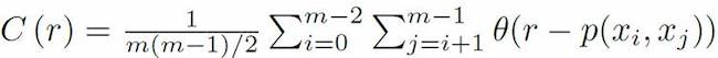 - Olivier Heavy side function, p - is the distance in n-dimensional phase space, m is the number of points on xi attractor.
