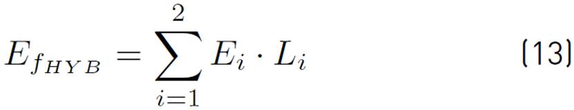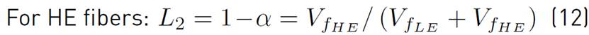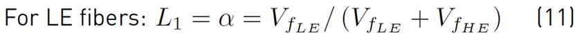 Where E1 = EfLE and E2 = EfHE are the moduli of elasticity of the LE and HE reinforcements, respectively, whereas L1 and L2 are the corresponding fiber volume ratios, see (11) and (12).