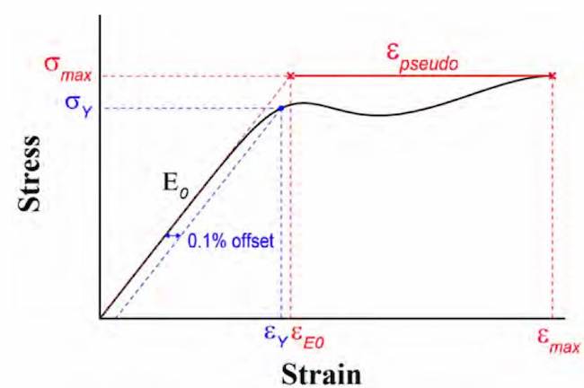 , is taken as the point where the curve noticeably deviates from its initial linear slope and can be computed using the 0.1% offset method[5], as shown in Figure 1.