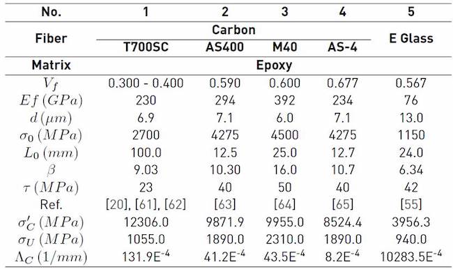 and Vf is the fiber volume content of the composite. In (4), is the characteristic stress, Lo is the characteristic length, τ is the fiber-matrix interfacial strength, d is fiber diameter, and