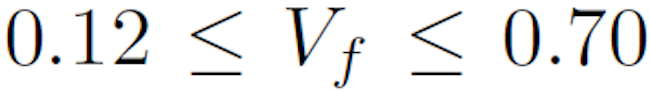 . The hybrid composite has a global fiber volume content, Vf , and the content of reinforcements within the global fiber volume is characterized by the fiber mixing ratios of LE and HE fibers, which are defined by (11) and (12):