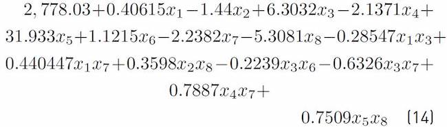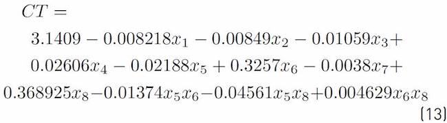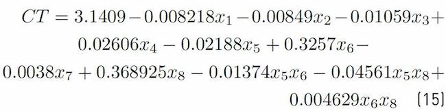 Equations (1), (4), and (7) do not have a closed-form expression, so we resorted to a simulation model and a fractional experimental design to obtain the Equations as a function of Bi ’s; these expressions are formally known as metamodels because they were obtained from the analysis of the simulation of the process being analyzed[8, 9]. A regression model might be linear: