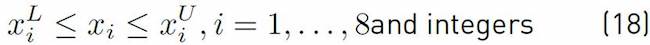 Where (15) is the objective function, (16) the constraint on the number of spaces available on the entire production line, (17) is the constraint on the Th required, and (18) corresponds to the range of spaces available in front of each work station and are integer variables.