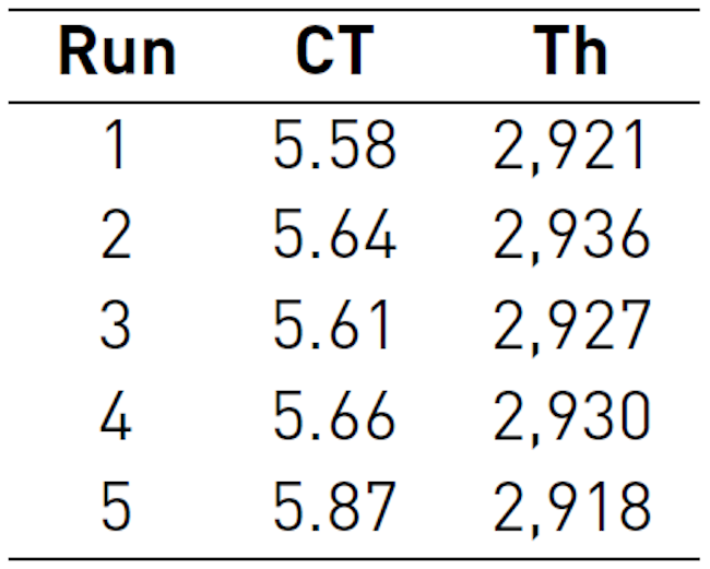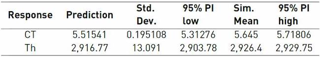 To verify that the metamodels possess an adequate degree of accuracy[28], 5 additional simulation runs of the central point were made, and the confidence intervals of Cycle time and Th were constructed. The respective confidence intervals are calculated below [Table 8 and 9].