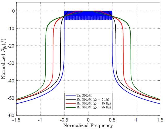 denoting the PSD of the transmitted GFDM symbol defined in [3]. Still in (20), “∗” denotes the convolution operator.