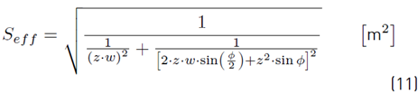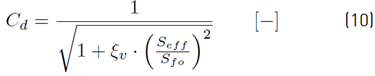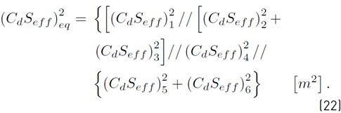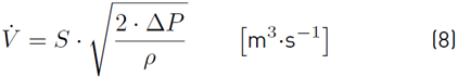 Where represents the airflow rate in m3・s−1 and S represents the area of free gap sections of the opening m2 (usually called effective area Seff ). This Equation considers a non-frictional fully developed turbulent fluid flow through the opening. If needed, the friction characteristics of the opening can be grouped in a single coefficient named the discharge coefficient (Cd ) which multiples Equation (8) here before.