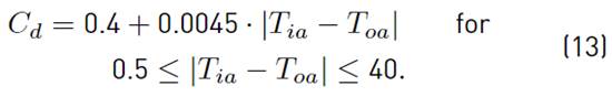 On the contrary, in [42], another empirical model for Cd is proposed as a function of the indoor-outdoor temperature difference, accounting for thermal buoyancy effects, as presented in Equation (13):
