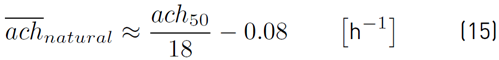 where ach50 referred to the value of ach at a pressure difference of 50 Pa measured via blower door tests.