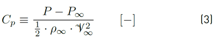 where Cp is known as the pressure coefficient [24,25].