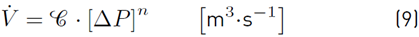 Moreover, for any fluid flow through an opening, an empirical Equation representing the airflow rate caused by a pressure difference between the upstream and downstream of an opening has been shown to follow Equation (9):