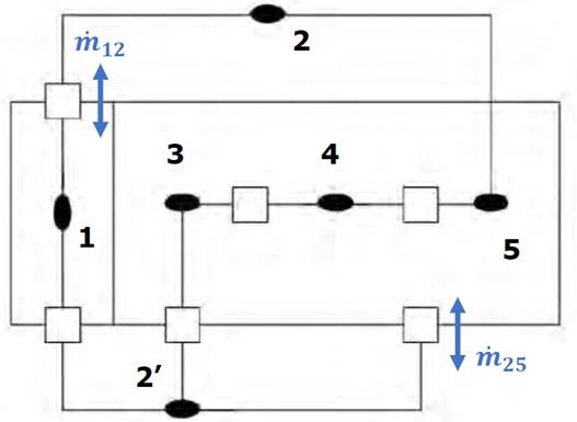 and in the case where the flow path between nodes 1 and 2 is located at a height of Z2 with respect to the flow path between nodes 1 and 2′, then (Equation (19)]:
