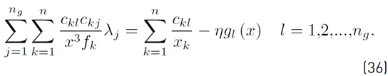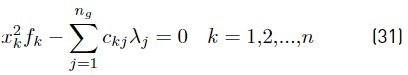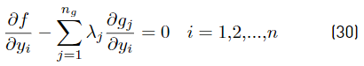 In this work the objective function is linear. For these problems the Kuhn-Tucker condition is (30)