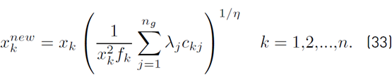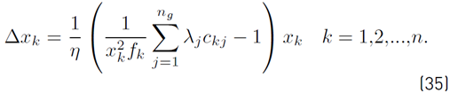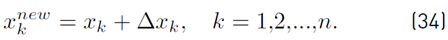 where the old value for xk is used to produce a new estimate. A linearized form of eq (33) obtained by binomial expansion is presented in (34)