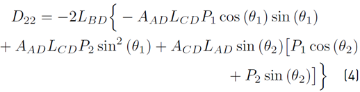 By applying Castigliano’s first theorem to the strain energies of the displacements D1 and D2 [10], we obtain the following Equations (1) and (2) for the joint displacements: