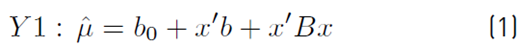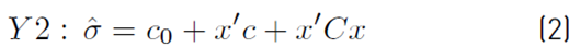 Where B and C are matrices of size k × k containing the second-order terms of the estimated coefficients of each response model; b and c are vectors of size k × 1 with the first order terms of the estimated coefficients of each model; b0 and c0 are scalar additive constants and x is a k × 1 vector of control or design variables. [15] details the general considerations for estimating models (1) and (2). On the other hand, the regression technique allows handling polynomials of any degree such that their effects are significant; this facilitates the study of curvature changes in fitted models. Regression uses least squares methods leaving the degree of the polynomial free. The theoretical support for this technique is based on the linear statistical model shown in Equation (3).