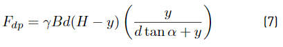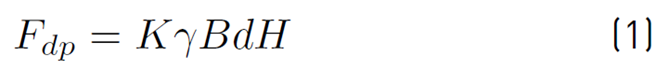 Where Fdp: downpull force (kN), K: downpull coefficient, γ: specific weight of water (kN/m3), B: width of the gate (m), d: thickness of the gate (m), H: operating head on the gate bottom (m)