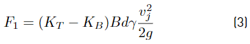 Equation (2) shows Naudascher proposed the estimation of the downpull force as a sum of three different terms:
