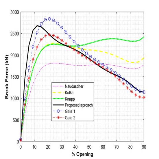 Further, the sampled forces during the closure operation of the gates N°1 and N°2 and the newly proposed equations (8) and (9) are also included.