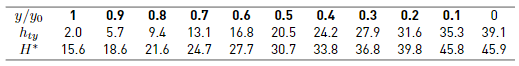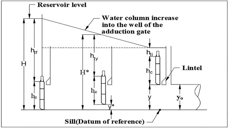 Where y/y0: Opening of the gate (ad), hty: Head on the top surface of the gate due to the water column over it (m), H*: Head on sill due to the water column into the well of the gate (m).