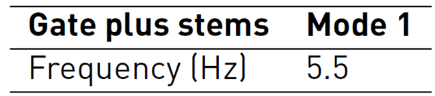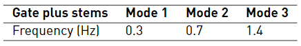 Based upon some authors [32-37], the literature in the design of a submerged gate, it is important to consider the mechanical vibrations induced by the flow. When the gate closes, the fluid-structure interaction generates excitation frequencies that might eventually be coupled with some mode of vibration of the gate-stems assembly and enter resonance, which could be extremely dangerous during the closure of the gate.