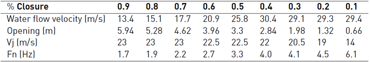The closure of the gate of tunnel 2 was carried out with the level of the reservoir at 388.50 masl, when the water was flowing at a rate of 300 m3/s through tunnel. The maximum velocity of the air through the aeration well was 30 m/s at 90% of the closure of the gate (i.e., 10% opening).