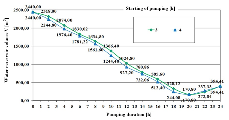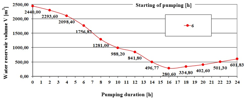 Given the analysis of changes in the pumping regime and the impact on the volume of the reservoir is intended to show the change in the pumping regime and provide the information in which certain period of the day there is a possibility of additional water storage. Based on the above expression, obtained for the minimum volume, the start time of pumping is defined.