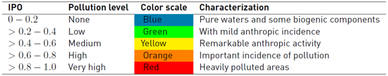 These pollution indexes are the IPOSUS (pollution index by suspended solids) which is an important indicator of the physical degradation of water and the presence of contaminants due to the concentration of suspended solids [18-20]; The IPOMI (Index of Pollution by Mineralization) groups hardness as a measure of calcium and magnesium ions, coming from the dissolution of rocks and minerals [21-22] , alkalinity reflecting carbonate and bicarbonate anions [23], and conductivity related to the amount of dissolved ions [24]; The IPOMO (Index of Pollution organic matter), represents the organic contamination of a water body, groups the biochemical oxygen demand, percentage of oxygen saturation and total coliform [25]; and the IPOTRO (Index of Trophic Pollution) which measures the total phosphorus concentration, and is an indicator of eutrophication [26].