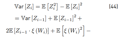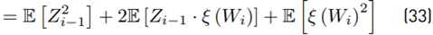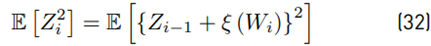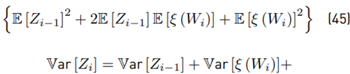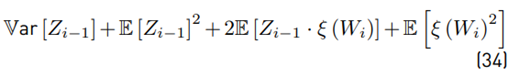 Now with E [ξ (Wi)] using Equation (26), Var [ξ (Wi)] using Equation (30) and 2E [Zi−1 · ξ (Wi)] using Equation (35), we have all equations to be used together with Equation (46), which can also be rewritten as: