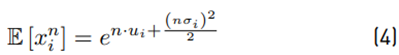 The 1st (n = 1) and 2nd (n = 2) moments of xi are given as: