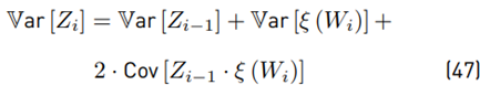 Where: Cov means covariance. Finally in this section, we have found all the formulations to evaluate E [ξ (Wi)], Var [ξ(Wi)], E [Zi], and Var [Zi] through the Equations (26), (30), (3), and (46), respectively.