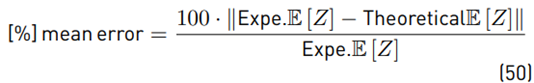 The perceptual error of the mean value: It is the difference between the experimental (by means of Monte Carlo simulation) and the theoretical result. This error will be percentual using as a reference the experimental result. The way to calculate this value is: