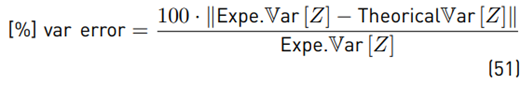 Percentual error of the variance: It is the difference between the experimental and the theoretical result of the variance. This error will be percentual using as a reference the experimental result, and the way to calculate this value is: