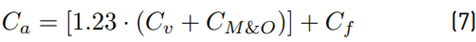 Where r represents the annual interest rate of 3.75%, referring to the Selic rate for April 2020; f represents the annuity factor in 1/year; q represents the capital value; k represents the amortization period in years. The manufacturing cost, fuel production cost, and the maintenance and operation cost are determined by Equation (4), Equation (5), and Equation (6), below: