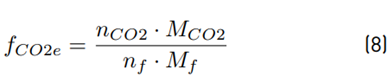From the chemical reactions described above, it is possible to arrive at the CO2 emission factor, in kg of CO2 eq. per kg of fuel, calculated by Equation (8) [29]. Here, the CO2 emissions are considered as CO2 eq. emissions, since there are no emissions of methane, sulphur dioxide, nitrogen dioxide and particulates present in this simulated process. Additionally, the complete steam-reforming in the fuel processor was considered for simplification purposes. In practice, a small amount of fuel remains downstream of the SOFC due to incomplete reforming, thus, this remaining fuel is burned in the combustion chamber of the SOFCEV[17].
