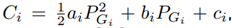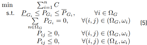are the maximum and minimum of power generation limits for the generator i ∈ N; Pij is the power of the connected line among the nodes i and j; ΩG and ΩL are the sets of all generators and loads (or consumers) respectively; and ωi is the set of all generators connected in the node i. The cost function C is usually based on generation costs, generation losses and the desired voltage; the function can be modeled by a quadratic function