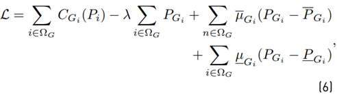 Assuming that the primal problem supports a feasible solution, the optimal configuration for all agents can be parameterized only in terms of λ, thus knowing the value of the Lagrange multiplier λij , the upgrade for the generator power i is given by (17):