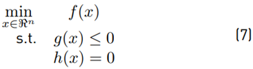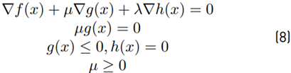 Karush-Kuhn-Tucker (KKT) optimal problem conditions allow finding if the solution is optimal. Suppose a function f: K ⊂ ℜn −→ ℜ is convex if K is a set of convex vectors and the constraint function is g : K ⊂ ℜn −→ ℜ (7).