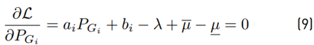 This is known as the economic dispatch criterion. For generators with binding inequality constraints the marginal cost is deviated from λ by the value of the Lagrange multipliers of the corresponding link constraints [33].