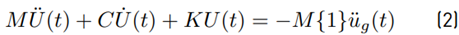 with u d as the displacement of the TMD, and the dots on U represent the derivatives of the function in the time domain.