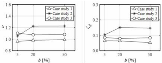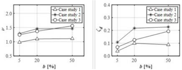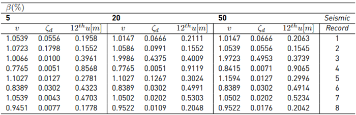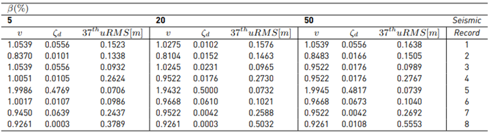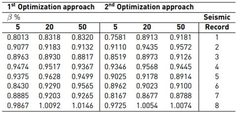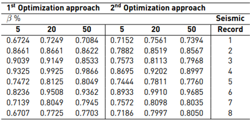 The above tables reveal that independently from the case study, the best reductions were found using the lowest inertance value (b=5%). Besides, the PI demonstrates a better behavior in the case-study 1, showing reductions up to 30% in the seismic response. Finally, only in a few atypical cases, the computed value of PI was greater than 1 (PI>1), which means that the control device could not improve the uncontrolled response.