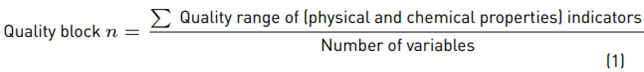 On the one hand, the chemical properties analyzed to establish the quality of the soil were Phosphorus (P), Potassium (K), percentage of organic carbon (% OC), cation exchange capacity (CEC), Nitrogen (N-NO3) and pH. On the other hand, regarding physical properties, texture and bulk density were analyzed. Furthermore, soil quality was assessed using Equation (1) [11]: